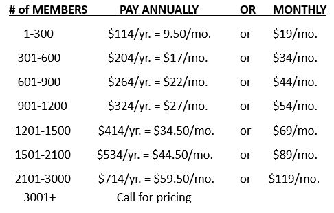 Your subscription cost is based on the number of visible member profiles in your directory. How many visible members are in your directory? On the web version, select the Admin tab, then Edit Organization Information.